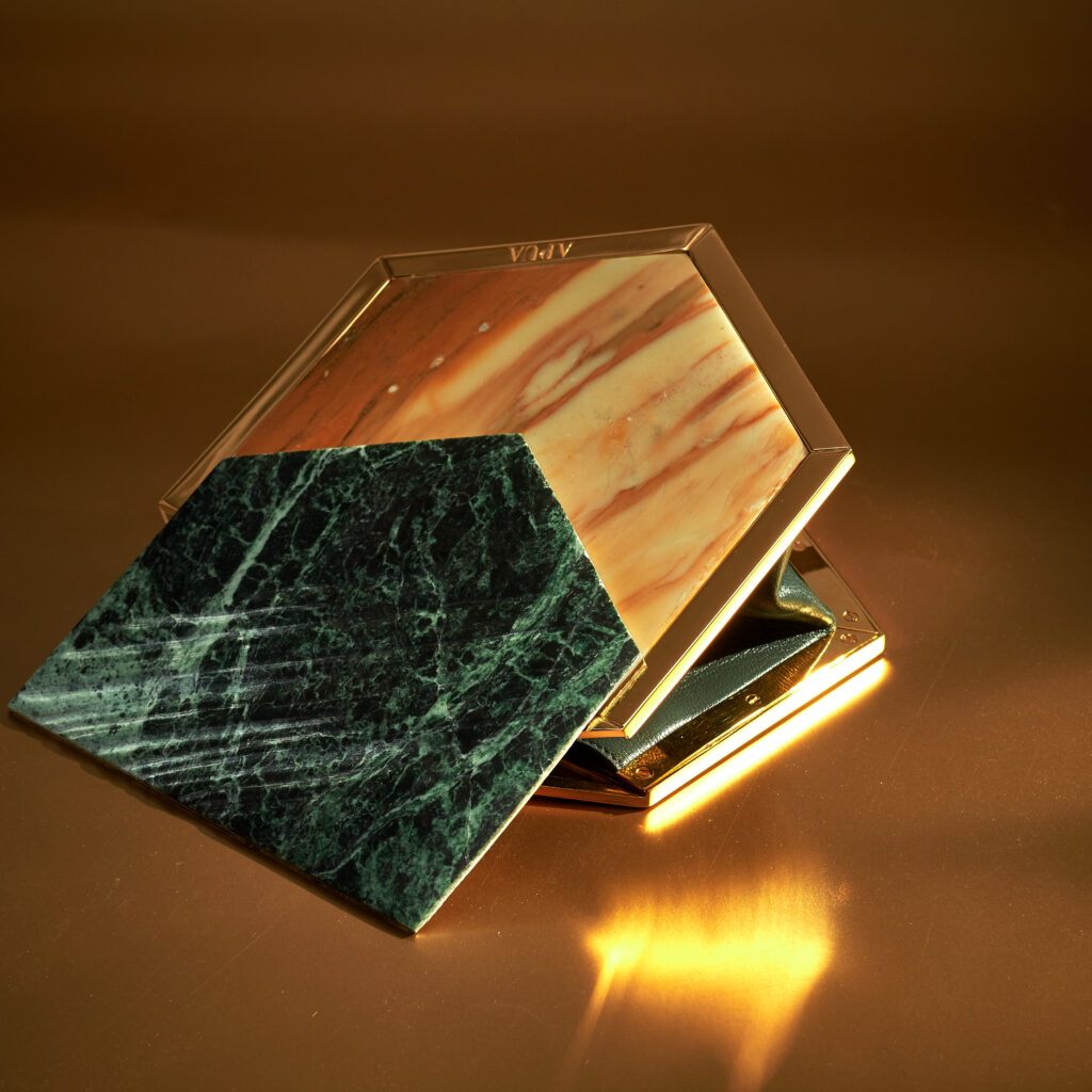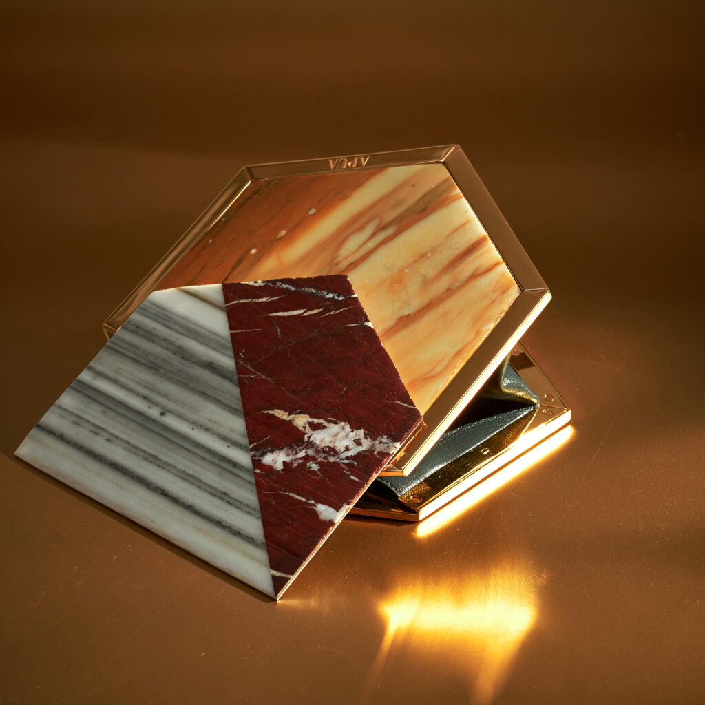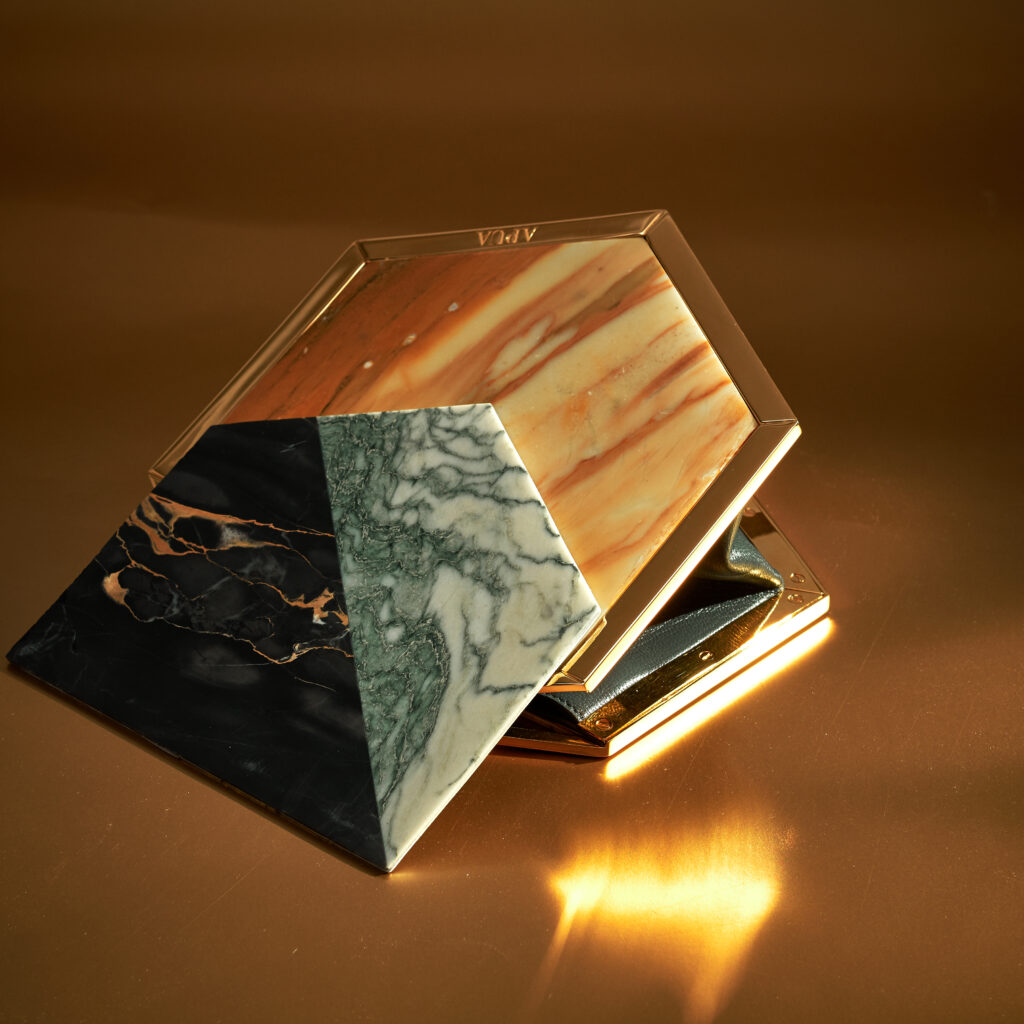 Each slab is different: its veins tell an emotion and a pattern that can never be perfectly replicated. This makes every APUA piece truly one-of-a-kind, genuine, and natural. No bag or piece of jewelry will ever be identical to another, just as each one of us is unique.